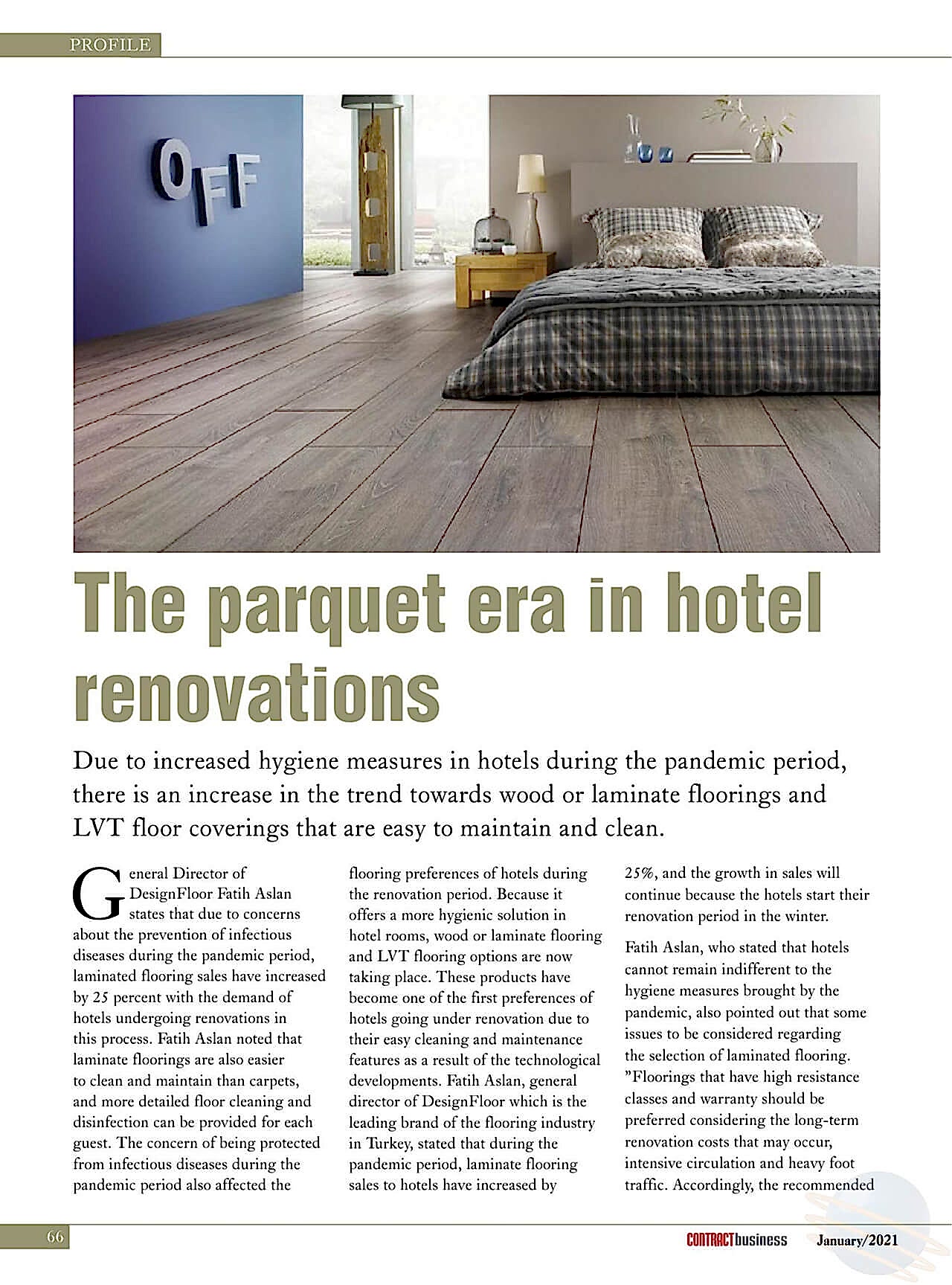 DesignFloor, "Otel Renovasyonlarında Parke Dönemi" başlıklı yazıda Contract Business dergisinin Ocak sayısında yer aldı.