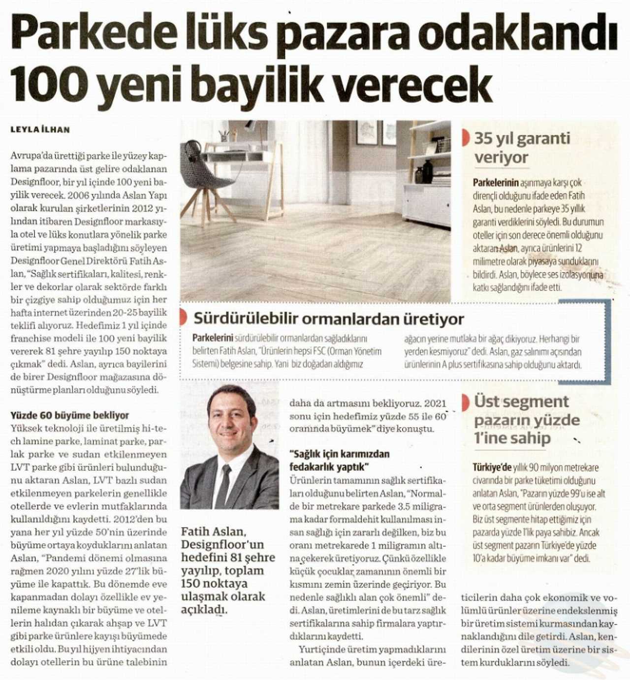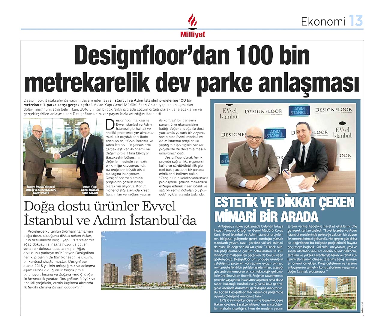 DesignFloor'un 100 bin metrekarelik dev parke anlaşması ve çözüm ortaklığı sunulan projeler, Milliyet gazetesinde yer aldı.