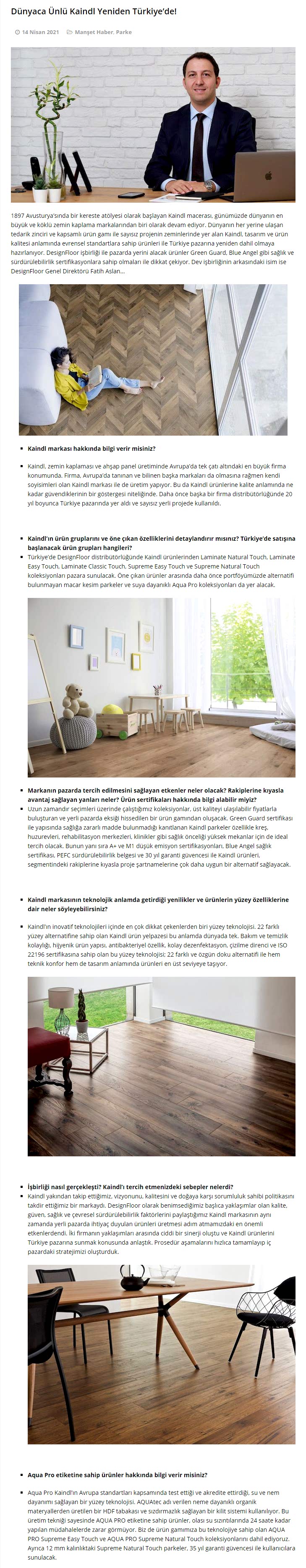 Zemin sektöründe pandemiye rağmen %25 büyüme elde edildi. Detaylar Akşam gazetesinde yer aldı.