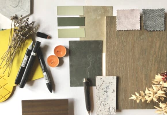 Parkelerimizin, mekanın diğer mimari ve dekoratif elemanları ile renk ve doku kombinlerini kurguladığımız moodboard serimizin yeni tasarımı, DesignFloor ürünlerinden Balearic Oak ve baharın ruhunu yansıtan canlı renklerle tamamlandı.